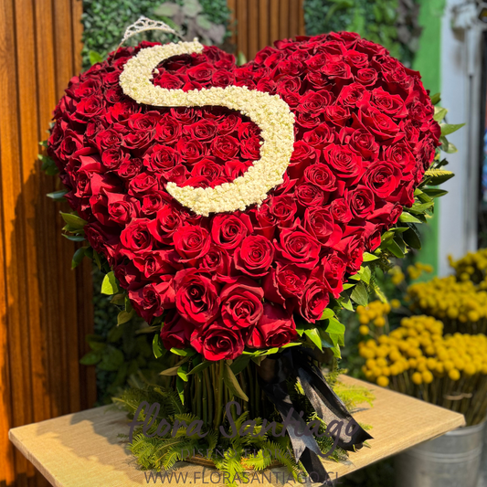 Arreglo corazón de 100 Rosas rojas