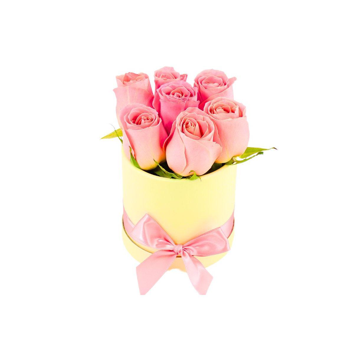 Arreglo box cilíndrico blanco, con seis rosas Rosadas