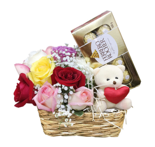 Delicado canastito que combina la elegancia de rosas rojas con detalles románticos. Esta composición floral incluye flores frescas de primera calidad acompañadas de un tierno osito de peluche, creando un regalo perfecto para expresar sentimientos especiales. Ideal para aniversarios, declaraciones de amor o momentos que merecen ser recordados. Cada arreglo es elaborado con cuidado por nuestros floristas expertos, garantizando frescura y belleza en cada entrega a domicilio en Santiago.