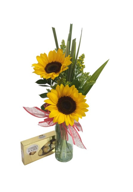 Un girasol solitario que captura la esencia del optimismo y la calidez. Esta pieza minimalista presenta una flor de gran tamaño, perfecta para expresar admiración, gratitud o simplemente iluminar el día de alguien especial. Su diseño elegante y sofisticado lo convierte en un regalo versátil que funciona para cualquier ocasión. Entrega a domicilio en Santiago con presentación premium que refleja la belleza natural de la flor.