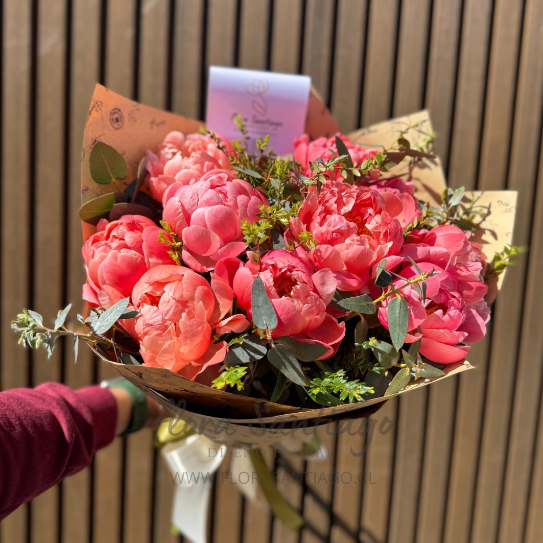 Nuestro ramo de Peonías es perfecto para los amantes de las flores. Las peonías son flores conocidas por su belleza y aroma. Este hermoso ramo de peonías traerá alegría y un toque de elegancia a cualquier espacio. ¡Haz feliz a alguien con este ramo de peonías!